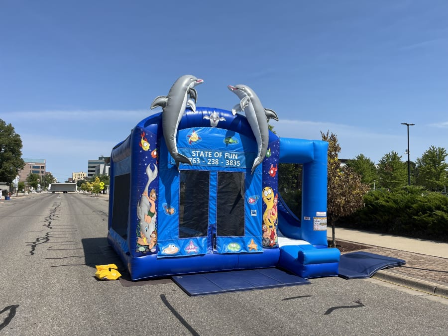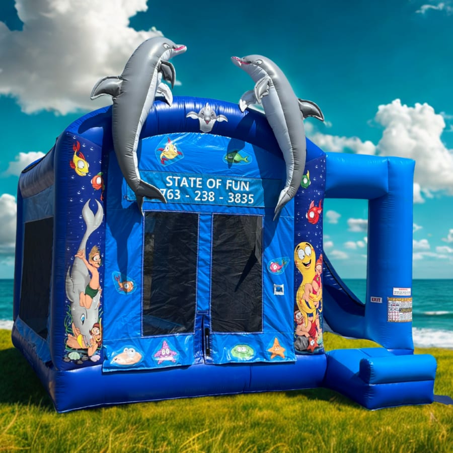 Explore the ocean with this Under the Sea combo! The Under the Sea combo is perfect for birthday parties, family gatherings, daycares, carnivals and so much more! The Under the Sea Combo has basketball hoops on the inside and outside along with a bouncing surface and a slide to allow the kids to have as much fun as possible.