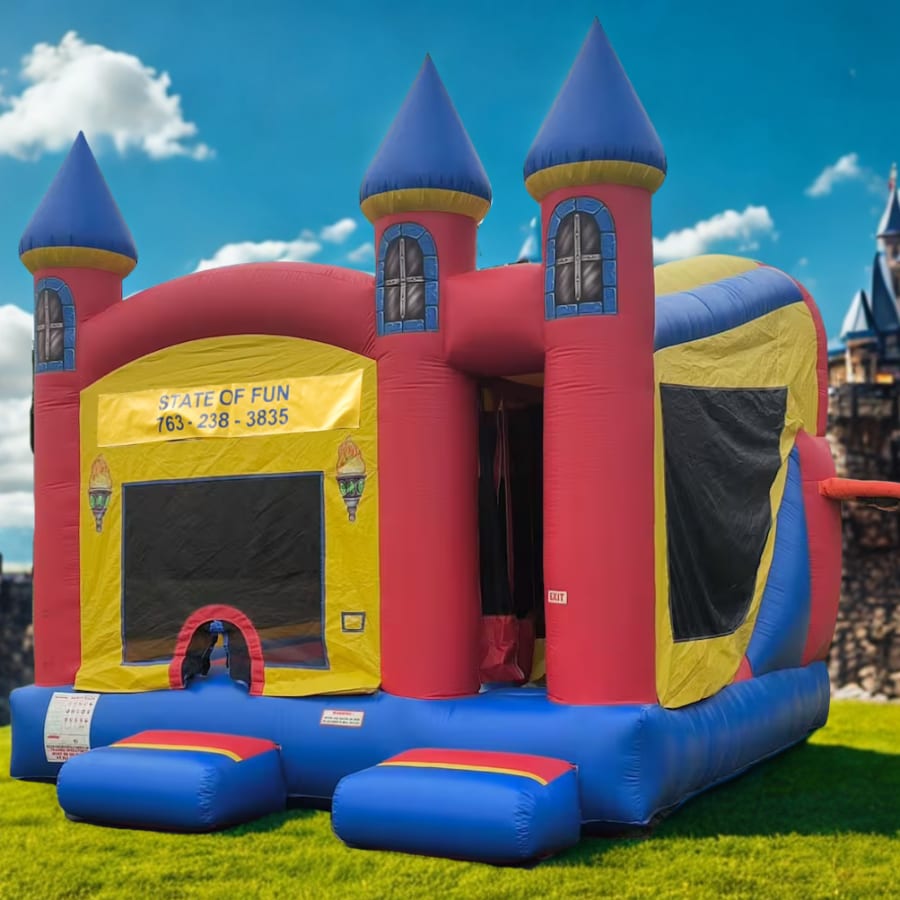Excalibur Combo is perfect for birthday parties, family gatherings, day care centers, carnivals and so much more! The Excalibur Combo has basketball hoops on the inside and outside along with a bouncing surface and a slide to allow the kids a variety of fun!