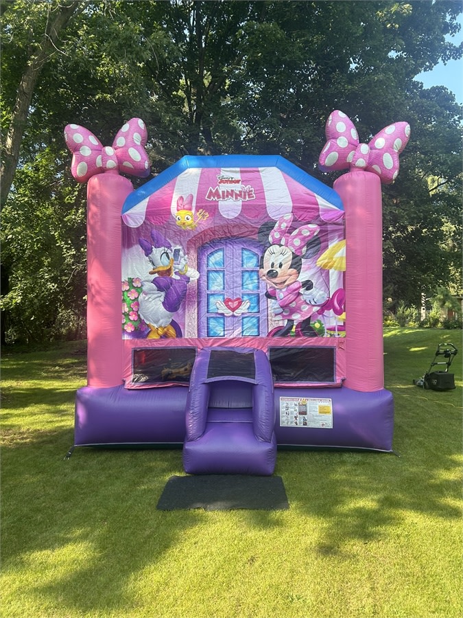 Be a happy helper with Minnie Mouse and Daisy Duck at the Happy Helper Headquarters with MINNIE MOUSE bounce house. The beautifully colored purple and pink bounce house has plenty of space for up to 6 Happy Helpers at a time to bounce and jump all they want.