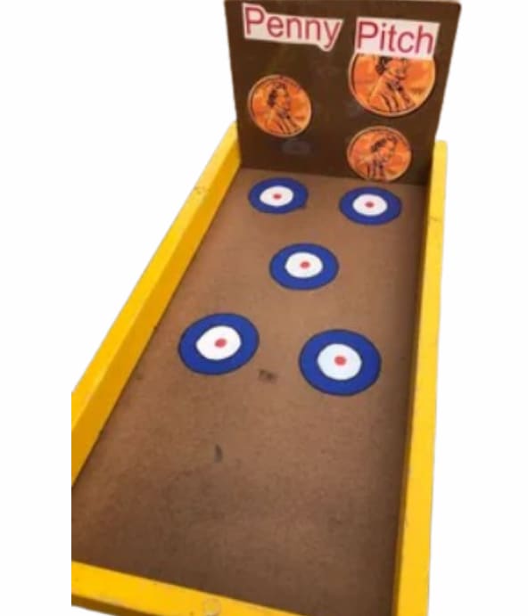 1) Attendant will give the player 3 - 5 pennies to flick 2) Player will flick pennies onto the targets 3) If player hits the targets they win!