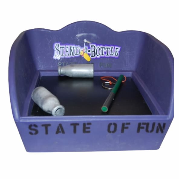 1) Hand the player a set number of rings (typically 3-5). 2) Explain the objective is to toss the rings onto the bottles or pegs. 3) Enforce the rule that the ring must fully land around a bottle or peg to count as a win. 4) Allow the player to take their shots from the designated throwing line. 5) If the player successfully lands the required number of rings, they win a prize. 6) Reset & Repeat: Collect the rings and prepare for the next player.
