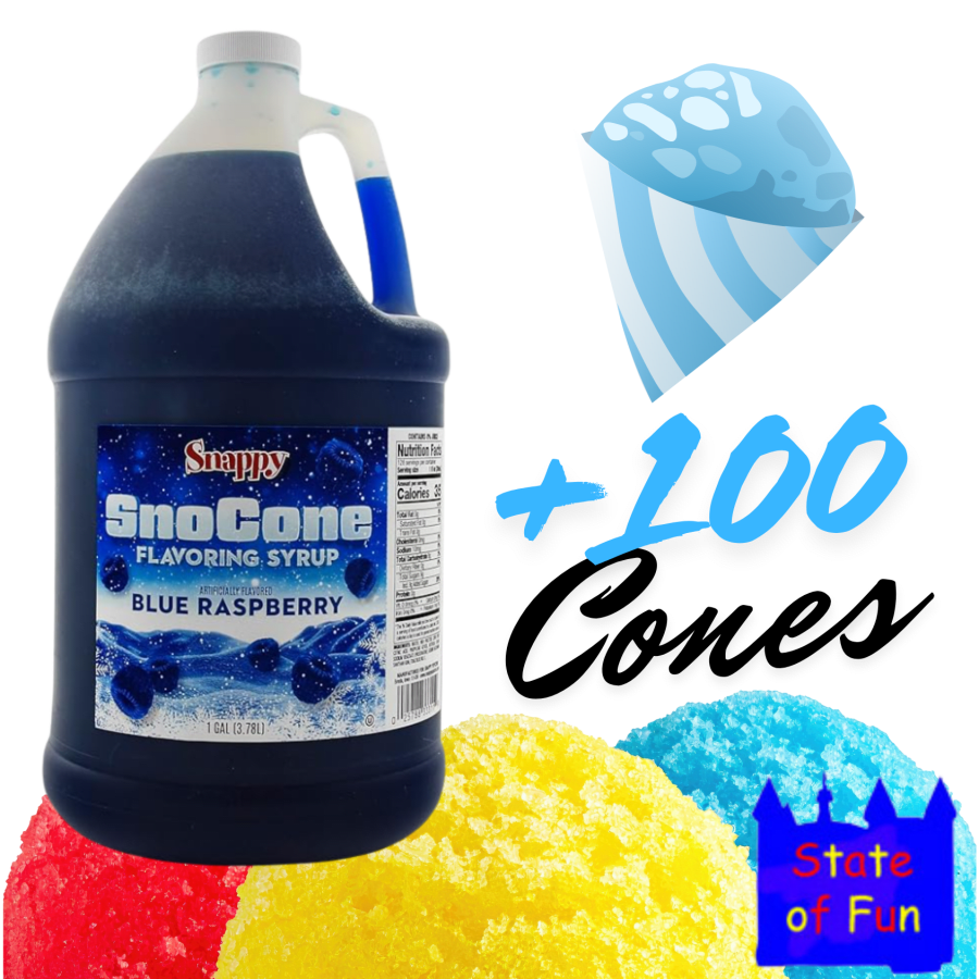 Stock up for hot days with the 100 Servings: Blue Raspberry Snow Cone Syrup Pack. This bulk-ready kit pairs one gallon of blue raspberry snow cone syrup with 100 sturdy cones. Perfect for field days, fundraisers, birthday parties, and concession stands. Ready to serve. Fast to set up. Big on flavor.