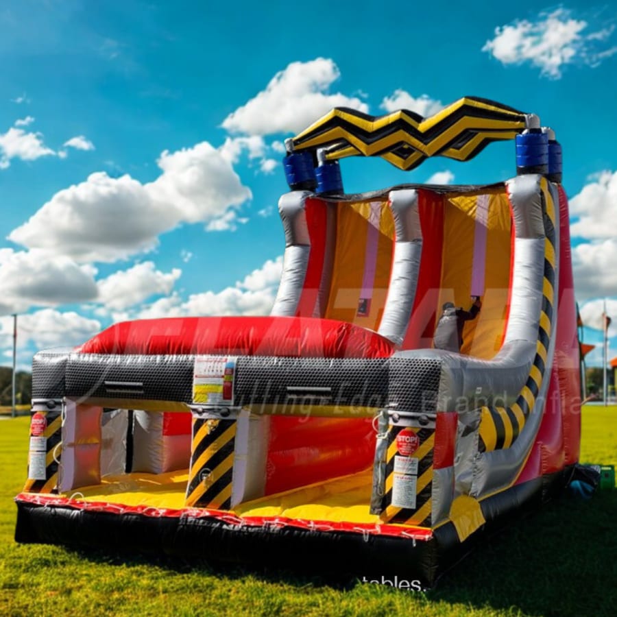 Take your event to the next level with this adrenaline-pumping challenge! Designed for thrill-seekers, the High Voltage Warped Wall features a steep incline that tests speed, strength, and determination. Pair it with The Grinder (rented separately) for the ultimate obstacle course experience. Perfect for competitive events, team-building, and festivals!