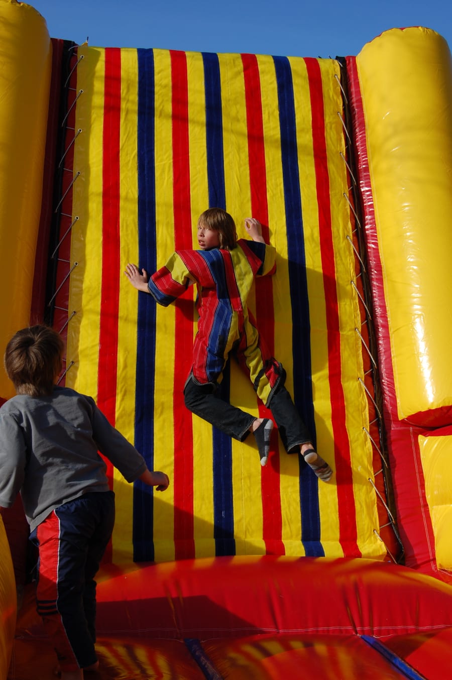 Ever wonder what it would be like to stick to a wall? Put on velcro suit and JUMP! This velco wall allows you to jump and catch the wall like a pro! Velcro suits available in multiple sizes.