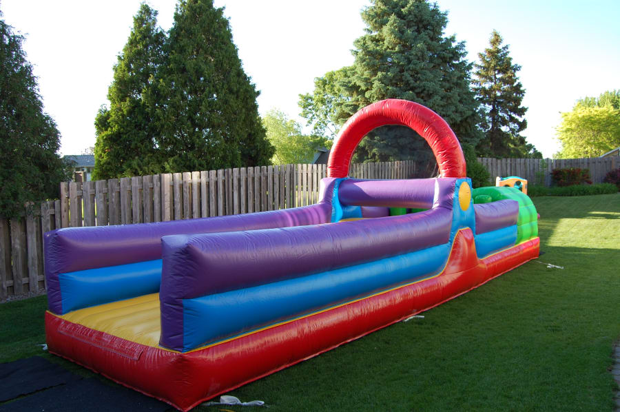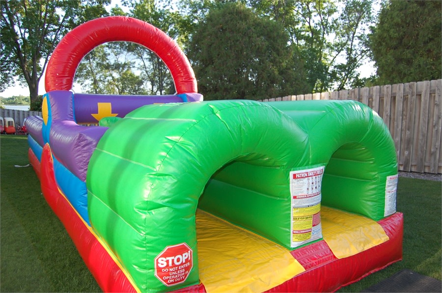 This dual lane obstacle course is tons of fun for kids! This inflatable best suits 5-12 year old kids to complete the challenge!