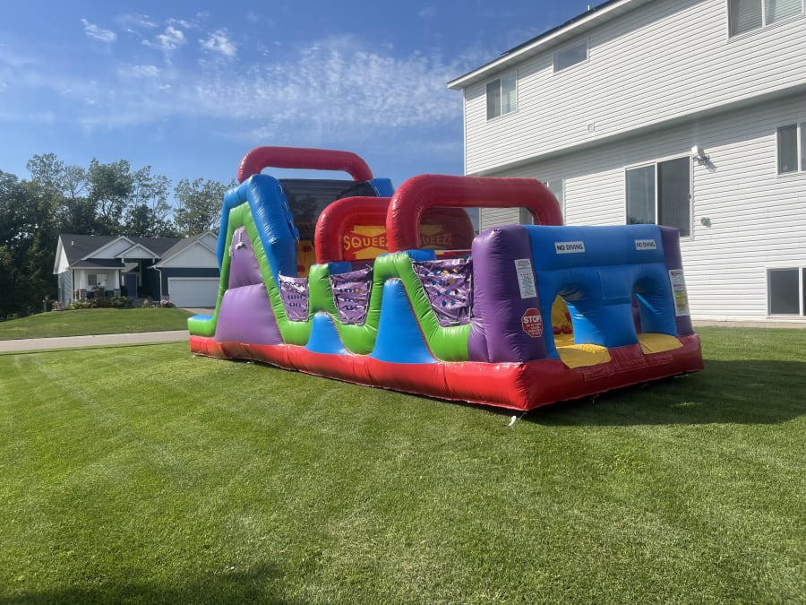 Book the Inflatable Rentals 40' Wacky Obstacle, 18' Wacky Slide & Moonwalk Package in your area for a high-energy, family-friendly event. This discounted party package bundles three top inflatables for maximum fun and value. Perfect for school events, corporate family days, block parties, and large backyard celebrations.